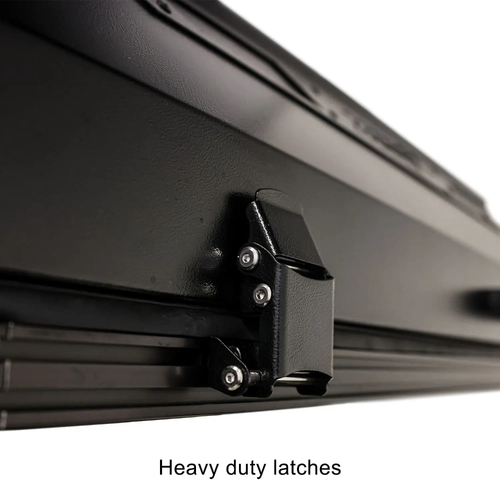 The Armadillo Horizon 3’s 14 GA fully welded aluminum shell is engineered for long-haul strength and year-round protection. Rounded corners reduce wind resistance and look clean on any rig. A new high-opening hinge system eliminates the need for spring poles, replacing them with an integrated front rainfly hoop for quicker setup in any weather.