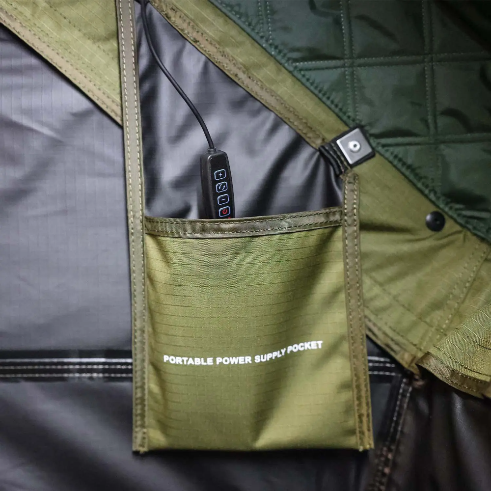 - Heater/cooler port accepts 4.5” ducting with locking drawstring sleeve